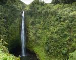 En times kjøretur fra Waipio-dalen kom vi til et annet utrolig naturfenomen: Akaka Falls. Den berømte fossen er 135 meter høy og faller fra en bratt klippe omgitt av frodige grønne planter - litt av et syn! Fossen ligger i den beskyttede Akaka Falls State Park, hvor du også finner et annet fossefall - nemlig det 30 fot høye Kahuna Falls.